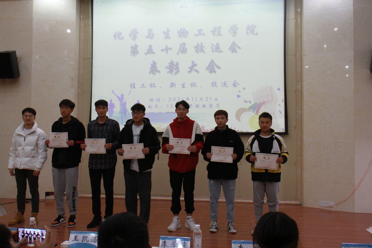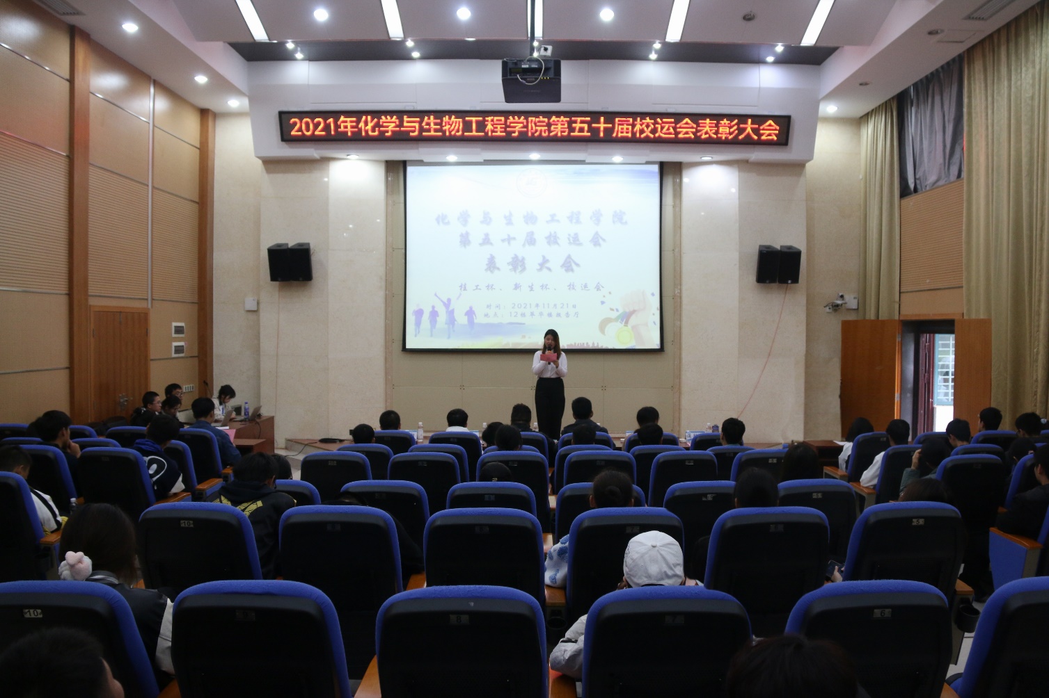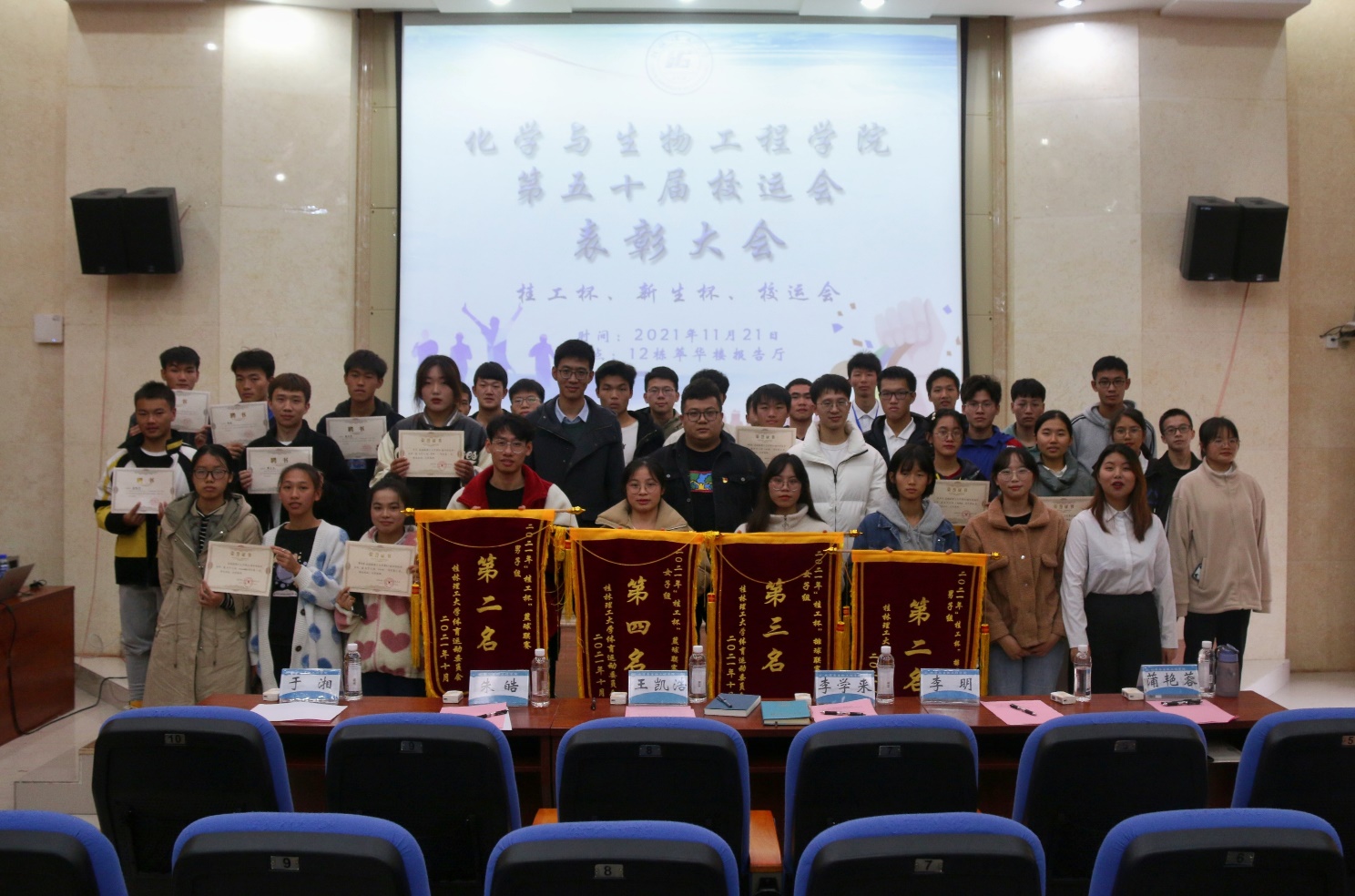 在雁山校区12栋萃华楼报告厅举行了第五十届校运会表彰大会,情色视频团委副书记王凯浩、情色视频19级辅导员朱皓、情色视频21级辅导员李学来老师出席会议,全体参赛运动员参加此次表彰大会。